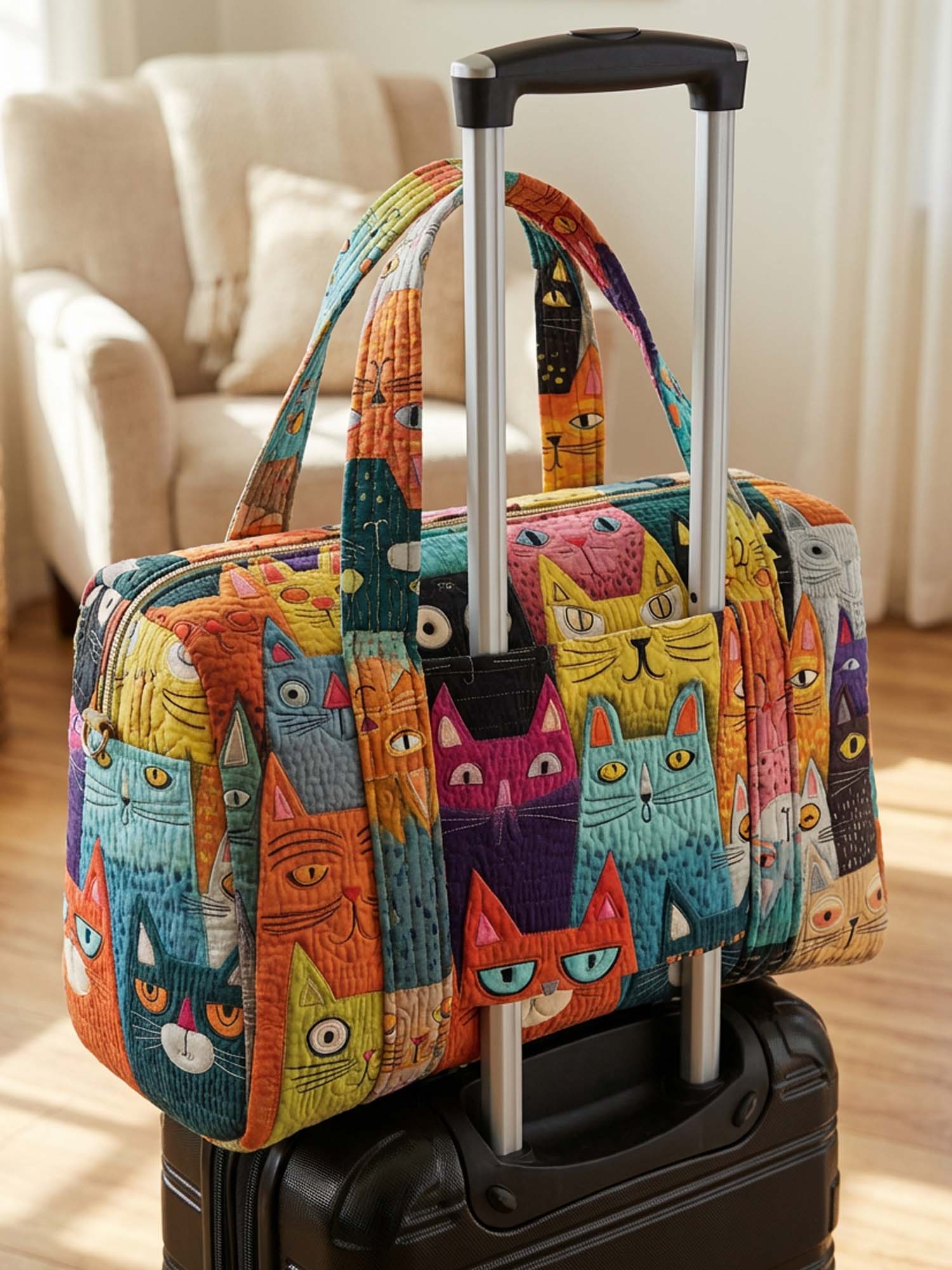 Colorful Cat Quilted Weekender Bag With Trolley Sleeve
