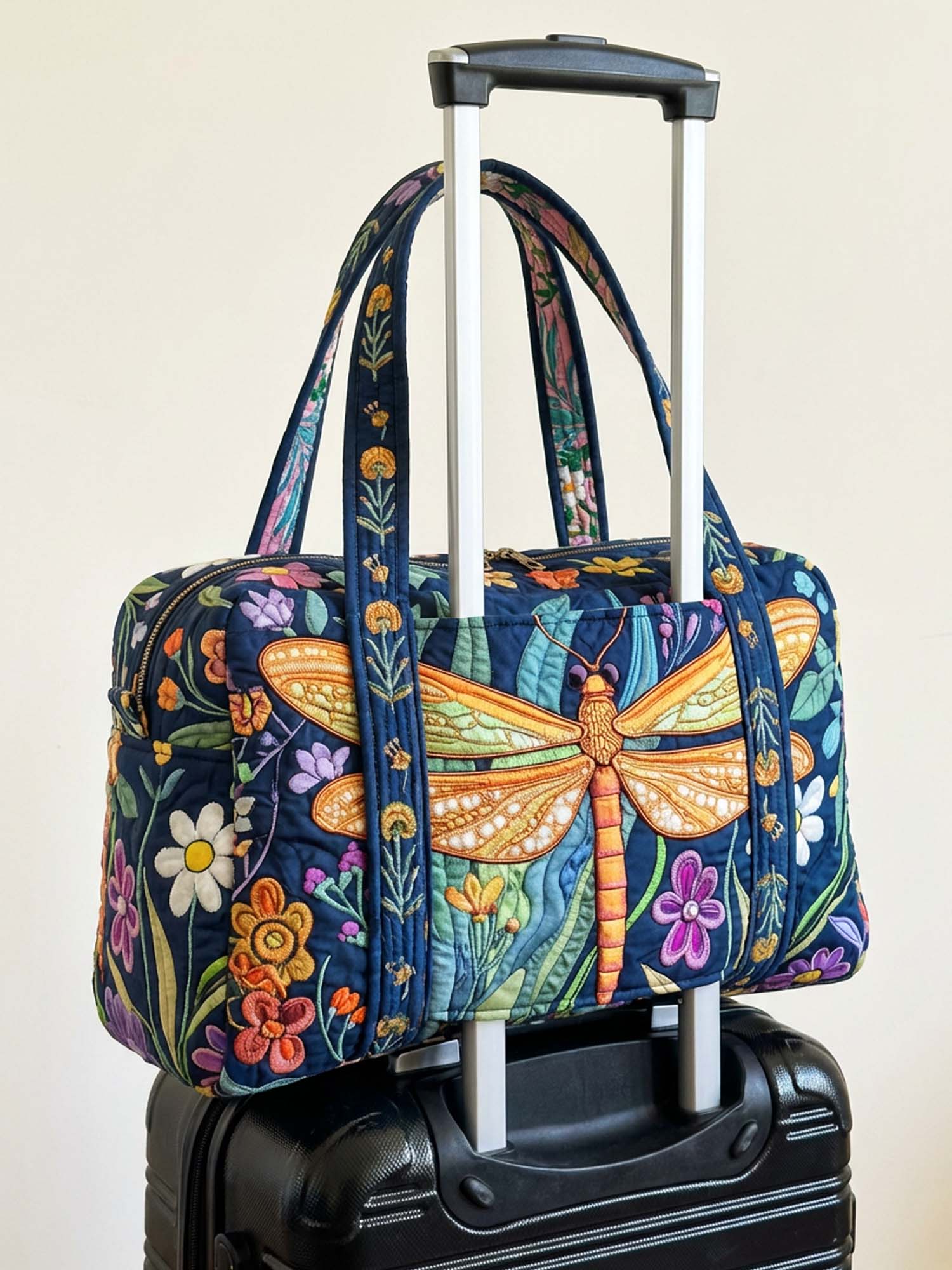 Dragonfly Among The Flowers Quilted Weekender Bag With Trolley Sleeve