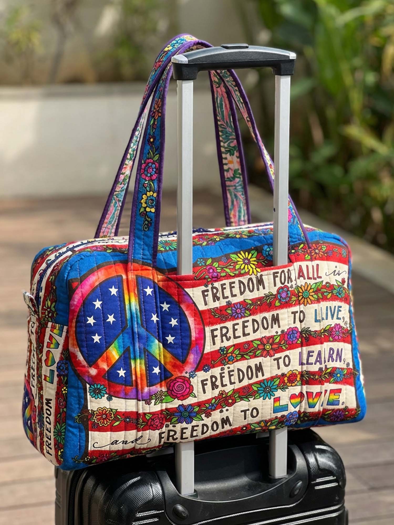 Flag Peace Flower Quilted Weekender Duffel Bag With Trolley Sleeve
