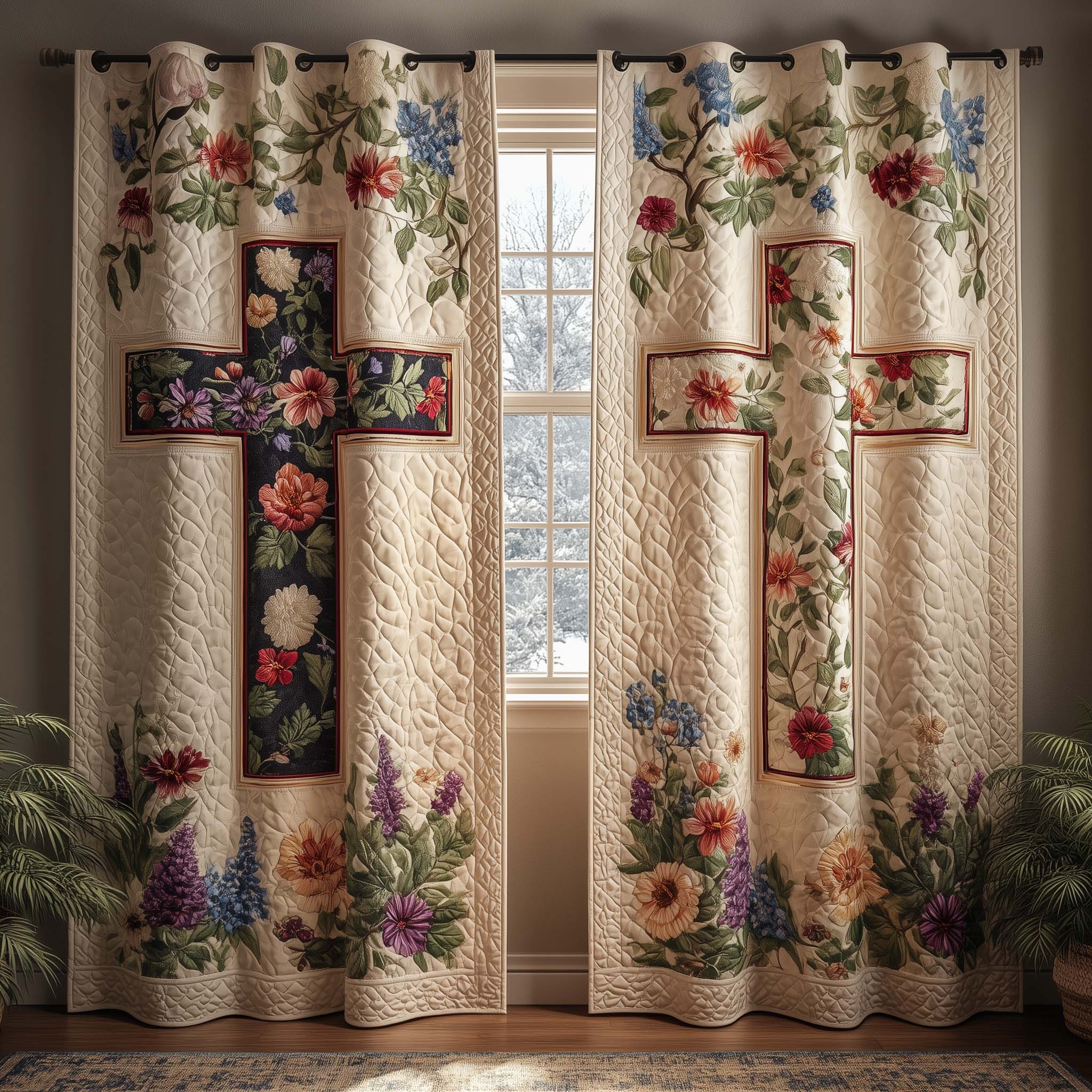 Floral Cross Quilted Curtains GFTOQM2252