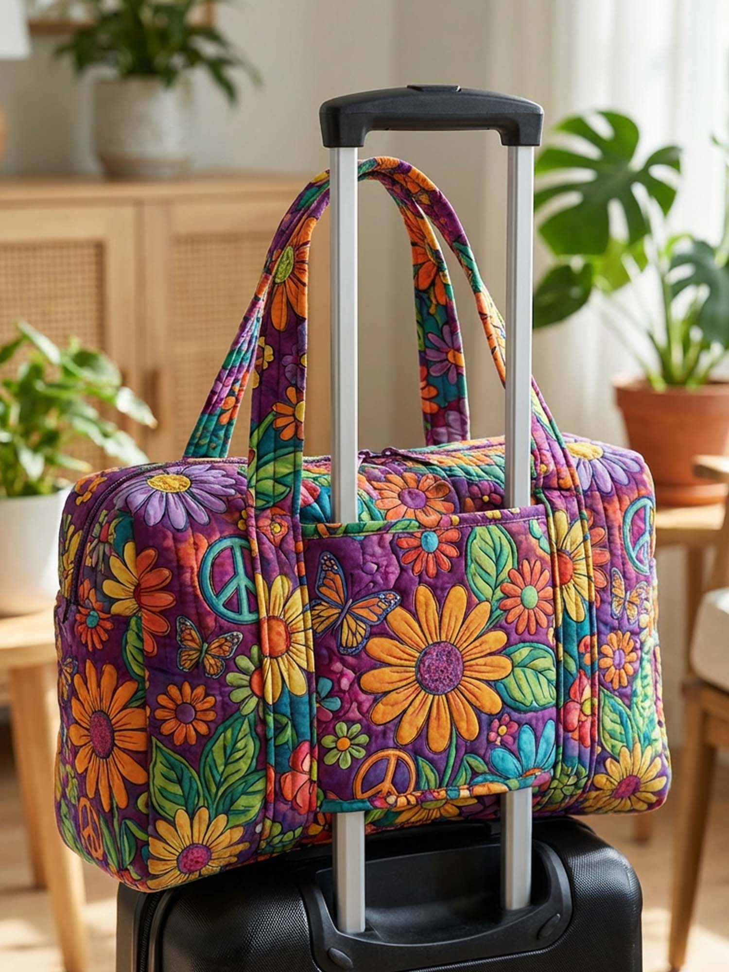Hippie Flower Quilted Weekender Duffel Bag With Trolley Sleeve