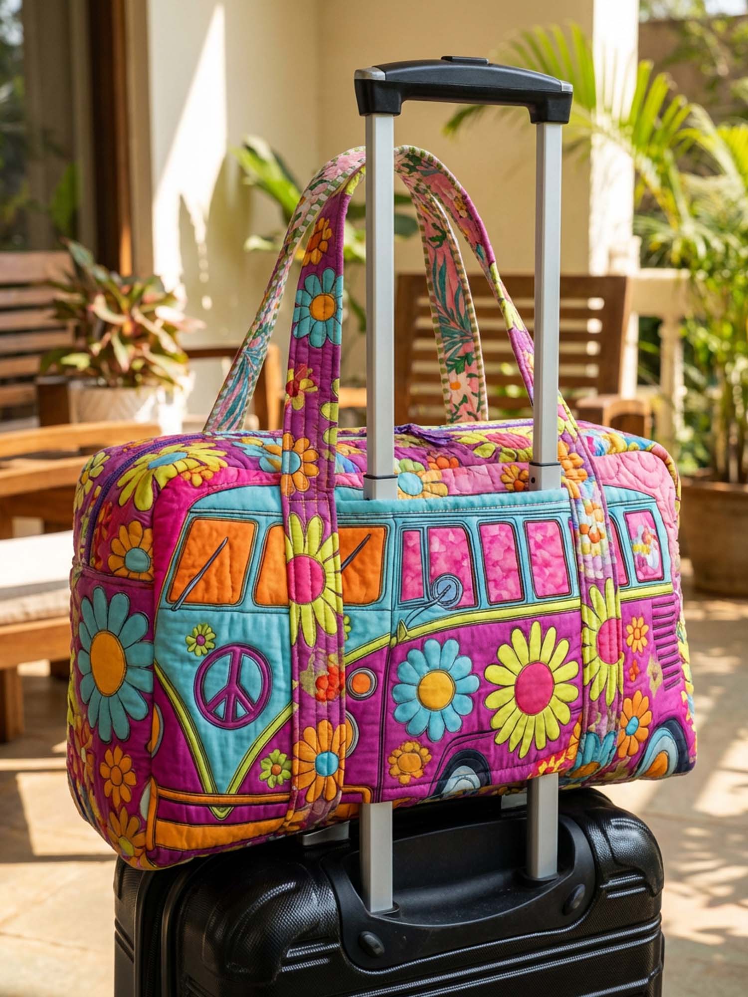 Hippie Van Quilted Weekender Duffel Bag With Trolley Sleeve