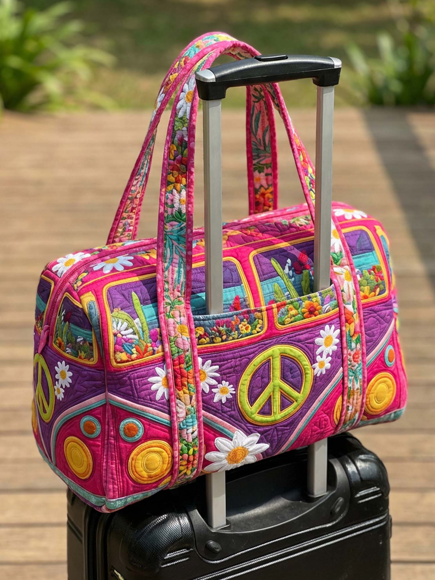 Hippie Van Quilted Weekender Duffel Bag With Trolley Sleeve